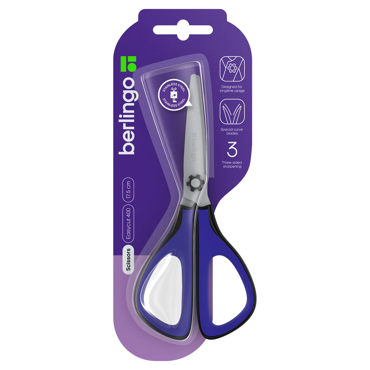 Ножницы Berlingo 'Easycut 300', 17,5см, синие, мягкие вставки, европодвес