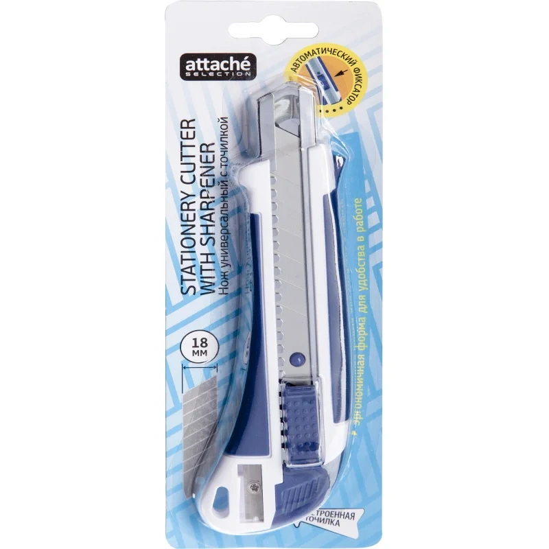 Канцелярский нож Attache Selection 18мм, с точилкой, синий