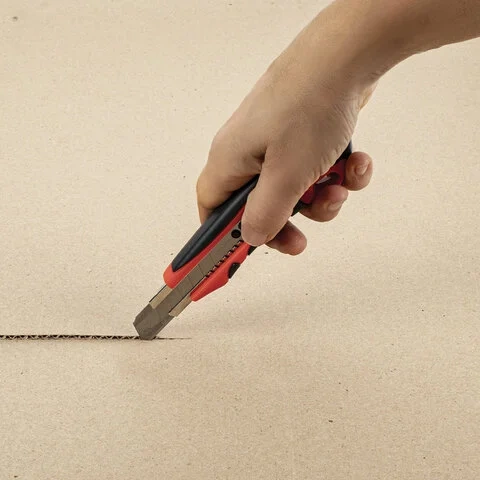 Нож имеет 3 лезвия шириной 18 мм, что обеспечивает быструю резку. Благодаря удобной ручке с резиновыми вставками обеспечивается комфорт и безопасность. Предусмотрен автофиксатор, при помощи системы блокировки лезвия предотвращающий его сдвиг в процессе работы. В пластиковом корпусе предусмотрено отверстие для подвеса, что позволяет удобно хранить принадлежность. Нож отличается эргономичностью и практичностью, подходит для офисного и домашнего использования. Поставляется в нескольких вариантах цвета (без возможности выбора).