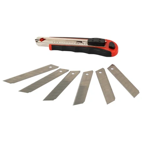 Канцелярский нож Brauberg 18мм, 6 сменных лезвий, ассорти