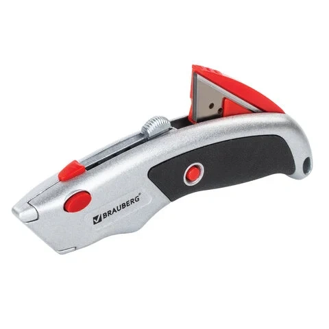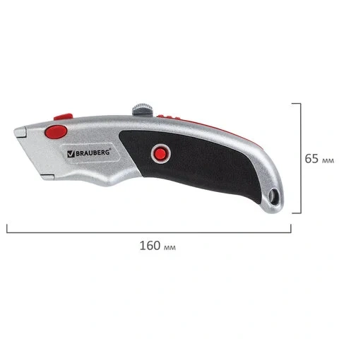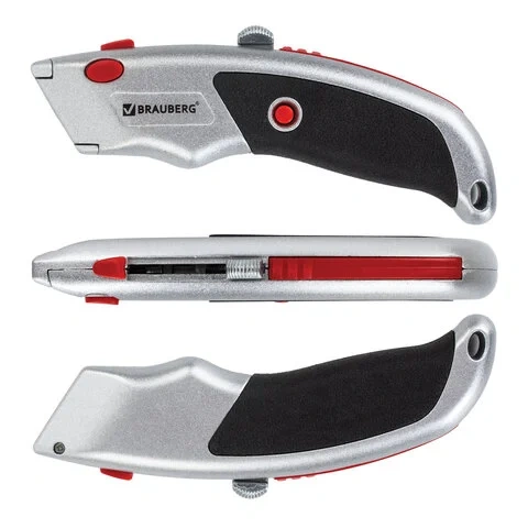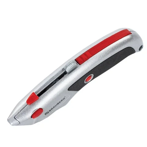 Канцелярский нож Brauberg 18мм, металлический корпус, мощный, + 5 лезвий
