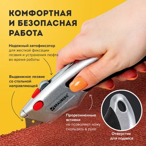 Универсальный мощный нож BRAUBERG 'Professional' - изделие, способное выручить в самых неожиданных ситуациях, а потому должно присутствовать в каждом офисном или домашнем наборе!