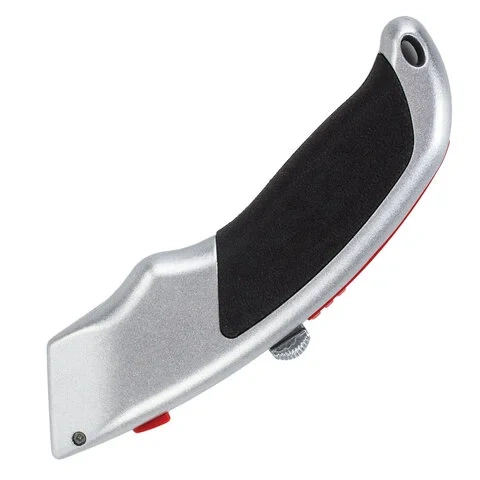 Ширина лезвия - 18 мм, что позволяет использовать его для более плотных и тонких материалов, нежели аналогичный инструмент меньшего размера. Нож снабжен надежным фиксатором-защелкой. Хорошая заточка позволяет работать даже с самыми капризными и сложными материалами. Может использоваться при отделочных работах или в домашнем хозяйстве. Затупившееся лезвие можно поменять с помощью специального автоматического механизма и вернуть ножу былую остроту. 5 лезвий поставляются в комплекте с ножом. Имеется отверстие для подвеса. Поставляется в нескольких вариантах цвета (без возможности выбора).