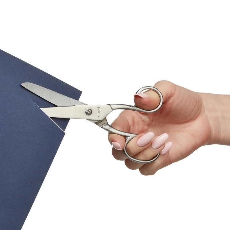 Ножницы канцелярские (офисные) Attache Metal изготовлены из нержавеющей стали. Изделие имеет прочный цельнометаллический корпус. Предназначены для использования как левой, так и правой рукой. Кольца имеют анатомическую форму для естественного положения ножниц в руке. Двухсторонняя заточка лезвий. Длина ножниц — 15,5 см. Изделие поставляется в блистерной упаковке.