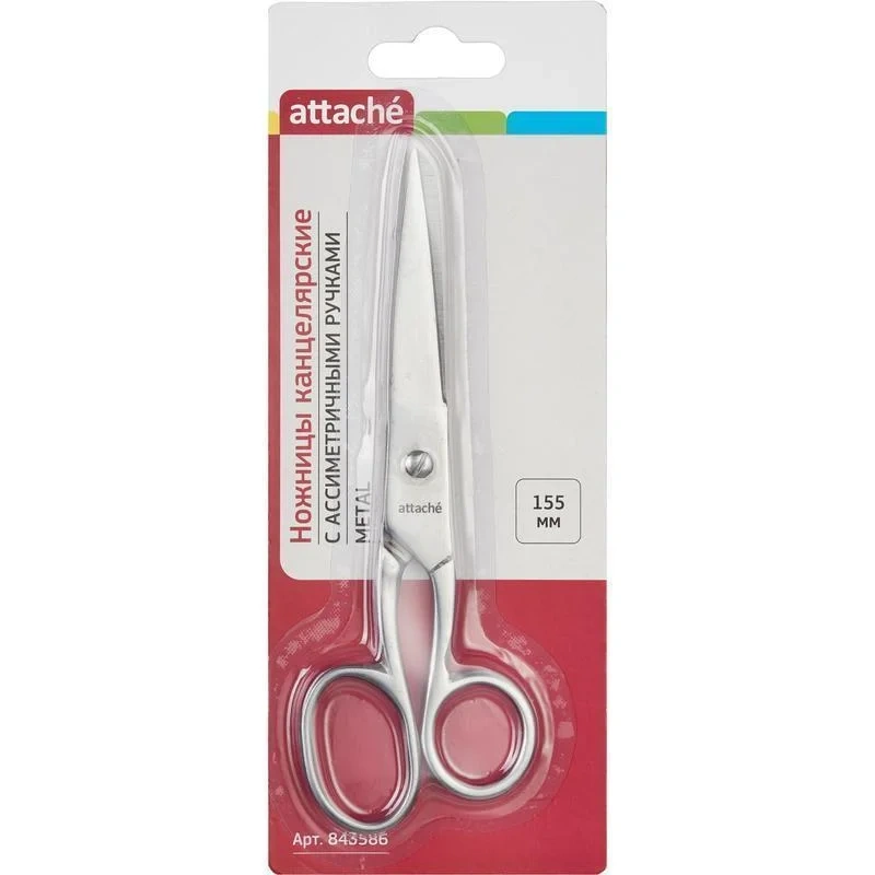 Ножницы Attache Metal 15.5см, цельнометаллические, ассиметричные ручки