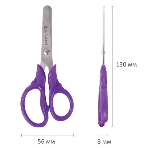 Ножницы Brauberg 130мм, эргономичные ручки, ассорти