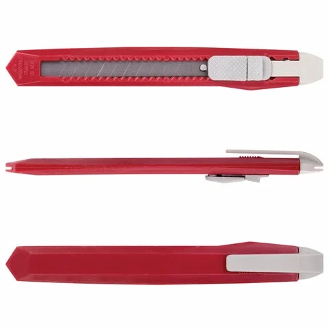 Благодаря своей обтекаемой форме нож удобно держать в руке. Пластиковый корпус с клипом защищает лезвие шириной 9 мм от повреждений и гарантирует безопасность применения. Фиксатор позволяет закрепить лезвие в нужном положении с помощью защелки.