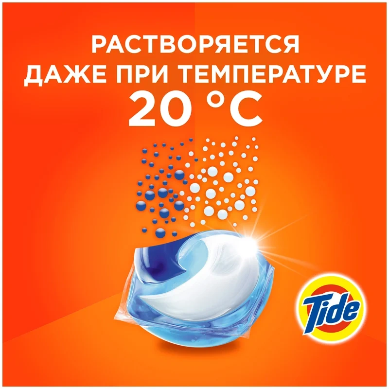 Капсулы Tide PODs - это инновационное средство для очищения одежды и белья, состоящее из 3 секций, в каждой из которых находятся отдельные компоненты. При контакте с водой во время стирки инновационная пленка капсулы растворяется и ингредиенты смешиваются, начиная сразу действовать. Точная дозировка позволяет отстирать целый барабан вещей всего одной капсулой. Специальная формула быстро действует, удаляя загрязнения, очищает даже стойкие пятна и сохраняет яркость цвета стирка за стиркой.