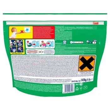 Средство моющее синтетическое жидкое в растворимых капсулах. Мощная, сверхконцентрированная формула, которая эффективно справляется с любыми типами загрязнений и сложными пятнами. Специальный компонент смягчает волокна ткани и защищает их от деформации. Дополнительный кондиционер не нужен.