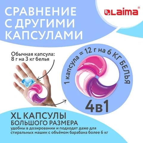 Капсулы для стирки большие концентрат 4 в 1, с кондиционером, 'Магия сакуры', 60 шт., LAIMA, 608877