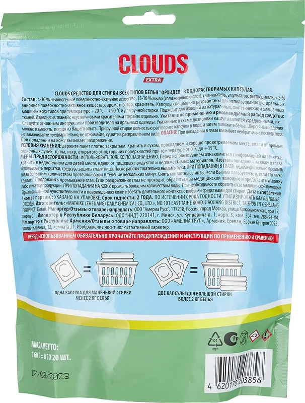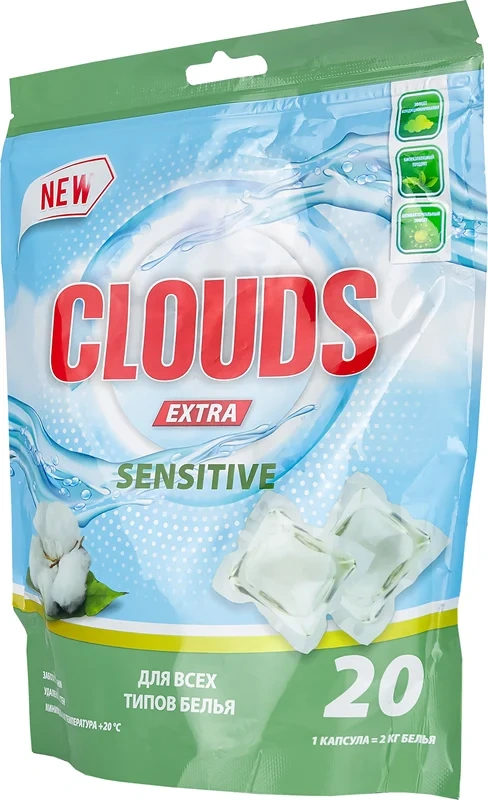 Капсулы для стирки Clouds Extra Sensitive Орхидея (8г x 20шт), 160г