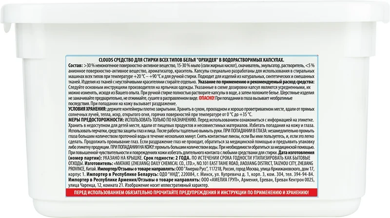 Капсулы для стирки всех типов белья Орхидея помогут бережно и эффективно удалить загрязнения даже в холодной воде. Плёнка капсул полностью растворяется во время стирки и имеет приятный ненавязчивый аромат. Средство обладает эффектом кондиционирования - придаёт белью мягкость. Перед использованием ознакомьтесь с инструкцией на упаковке.