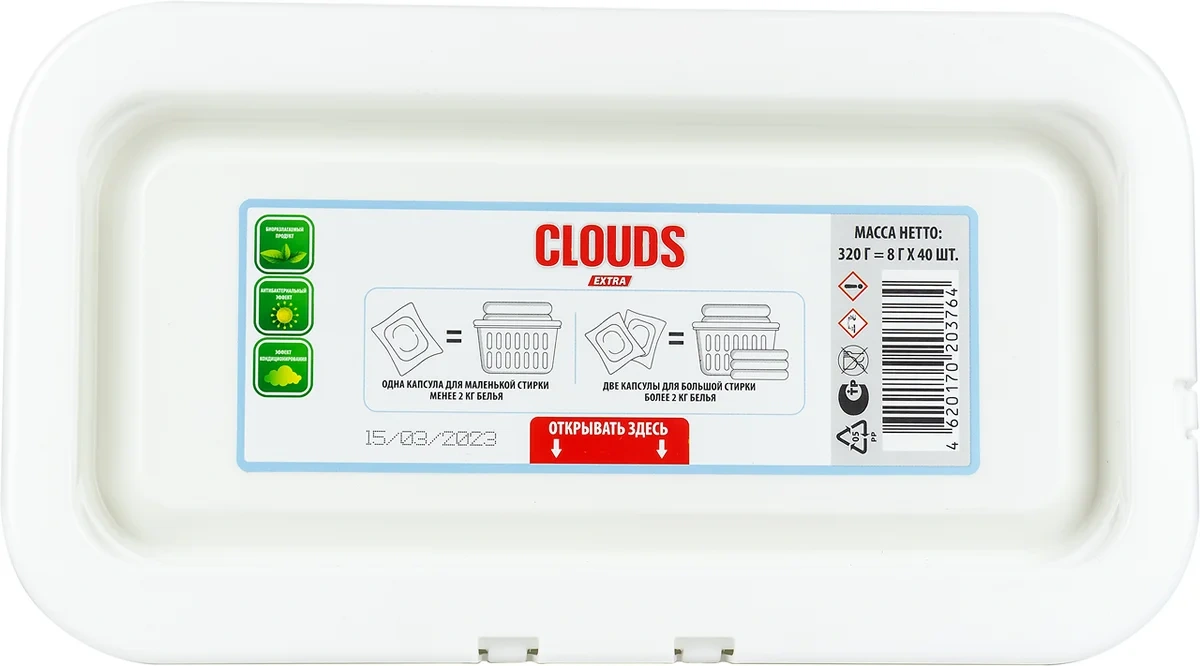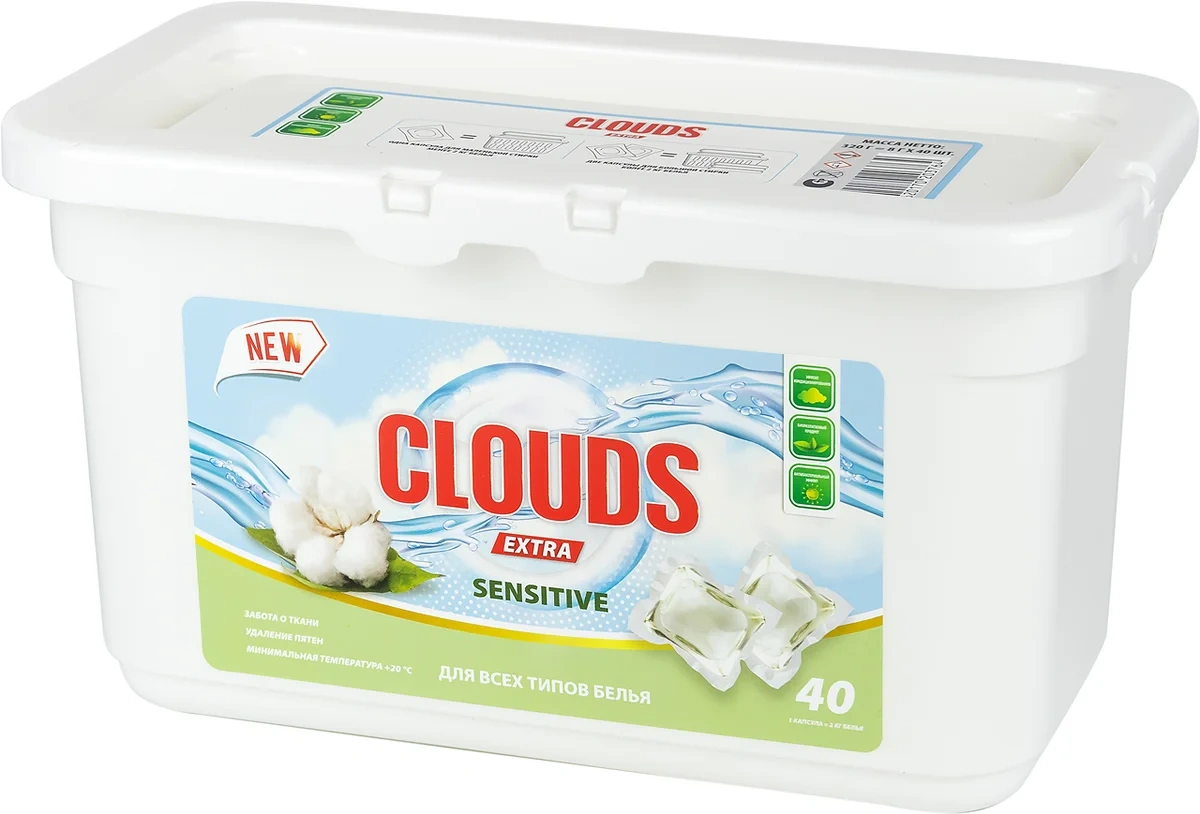 Капсулы для стирки Clouds Extra Sensitive Орхидея (8г x 40шт), 320г