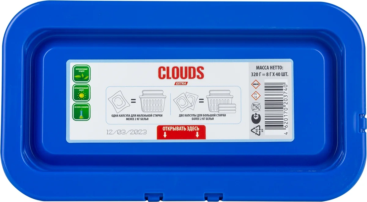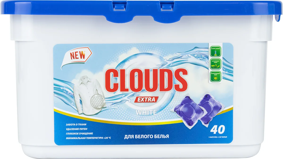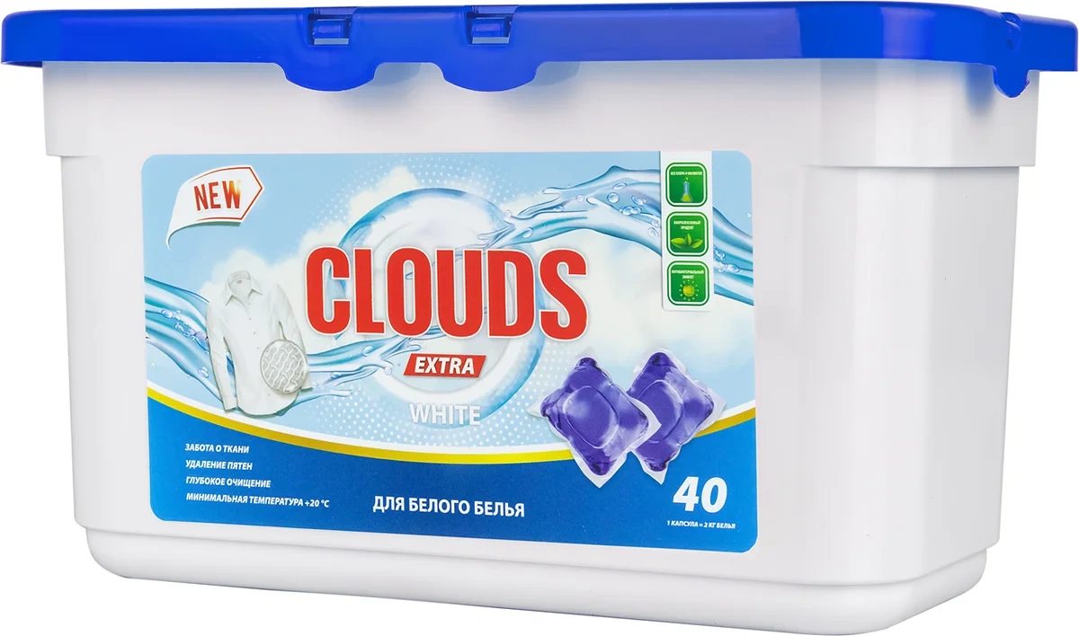 Капсулы для стирки Clouds Extra White Фрезия (8г x 40шт), 320г