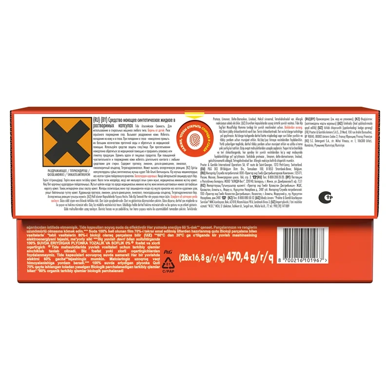 Капсулы для стирки Tide Альпийская свежесть 28 штук предназначены для белого и цветного белья. Каждая капсула состоит из трех секций, включая мощные активные вещества для очищения, удаления сложных пятен и усовершенствованную систему защиты белого. Оболочка растворяется даже в холодной воде. Просто загрузите капсулу Tide в барабан стиральной машины до загрузки белья и наслаждайтесь кристальной чистотой! Tide капсулы прекрасно очищают даже загрязнения в сложных зонах, таких как воротнички, манжеты, зона подмышек. Преимущества жидкого средства для стирки в капсулах Tide: Прекрасно очищает и удаляет сложные пятна даже при 20С; Сохраняет ослепительную белизну; Защищает ткань; Придает белью приятный аромат альпийской свежести; Не содержит фосфатов и хлорных отбеливателей. Внимание! Продукт может быть опасен. Берегите капсулы Tide от детей.