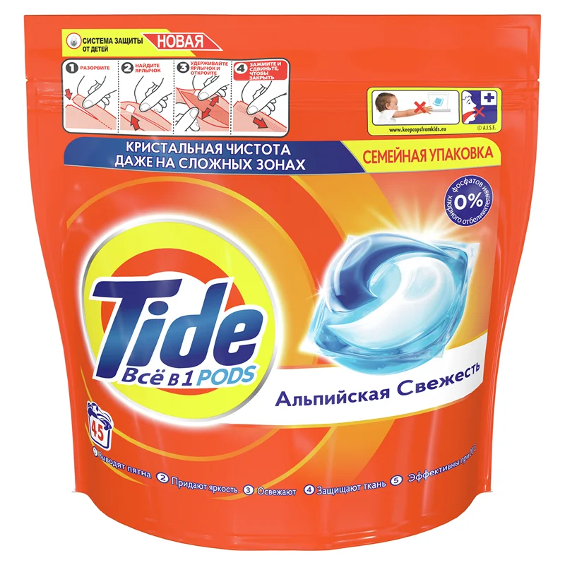 Капсулы для стирки Tide Альпийская свежесть Все-в-1 (16.8г x 45шт), 756г