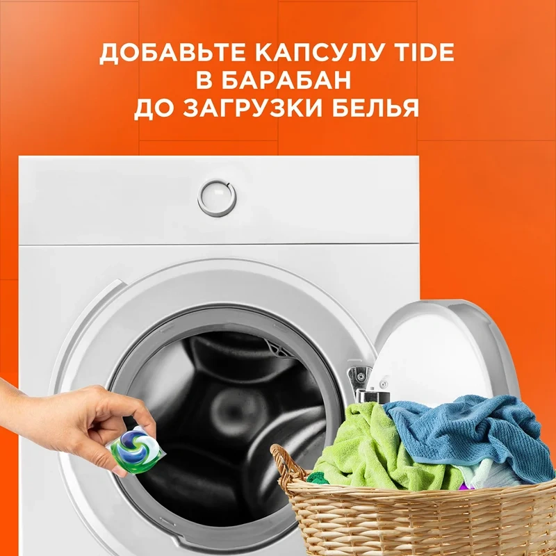 Капсулы для стирки Tide Альпийская свежесть 14 штук предназначены для белого и цветного белья. Каждая капсула состоит из трех секций, включая мощные активные вещества для очищения, удаления сложных пятен и усовершенствованную систему защиты белого. Оболочка растворяется даже в холодной воде. Просто загрузите капсулу Tide в барабан стиральной машины до загрузки белья и наслаждайтесь кристальной чистотой! Tide капсулы прекрасно очищают даже загрязнения в сложных зонах, таких как воротнички, манжеты, зона подмышек. Преимущества жидкого средства для стирки в капсулах Tide: Прекрасно очищает и удаляет сложные пятна даже при 20С; Сохраняет ослепительную белизну; Защищает ткань; Придает белью приятный аромат альпийской свежести; Не содержит фосфатов и хлорных отбеливателей. Капсулы Tide также доступны в большой упаковке 30 штук с более выгодной ценой за стирку. ВНИМАНИЕ. Продукт может быть опасен. Берегите капсулы Tide от детей.
