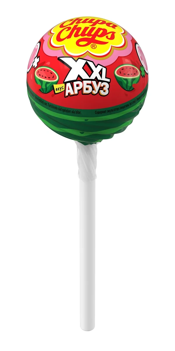 Карамель Chupa Chups XXL Арбуз и дыня в ассортименте, 29г x 40 шт – это карамель большого размера с сочными летними вкусами арбуза и дыни. Внутри жевательная резинка со вкусом клубники.Леденец на палочке не крошится, не пачкает одежду и руки. С ним удобно отдыхать, заниматься домашними делами, путешествовать. Карамель станет приятным дополнением к любому подарку или небольшим комплиментом близким людям.