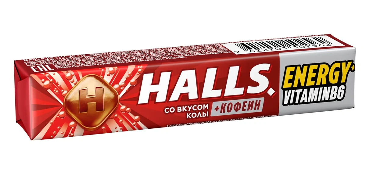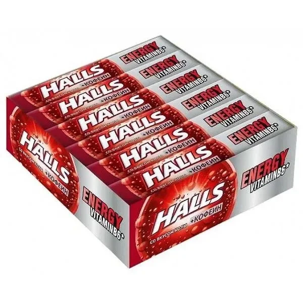 Леденцы Halls Кола-кофеин-витамин B6, 25г x 12 шт не являются лекарственным средством, но они помогают справиться как с першением, так и с болями в горле, особенно в первые дни простуды, когда очень трудно глотать. Холс отлично снижает раздражение, а также смягчает горло. Их удобно носить с собой, чтобы всегда иметь под рукой вкусные и полезные леденцы. Мощный освежающий эффект Halls возникает благодаря сочетанию ментола и эвкалипта. Полезные конфеты Холс содержат эвкалиптовое масло, которое благоприятно воздействует на слизистую гортани и смягчает боль в горле, а благодаря мятному вкусу леденцов сразу заметно, как становиться легче дышать.