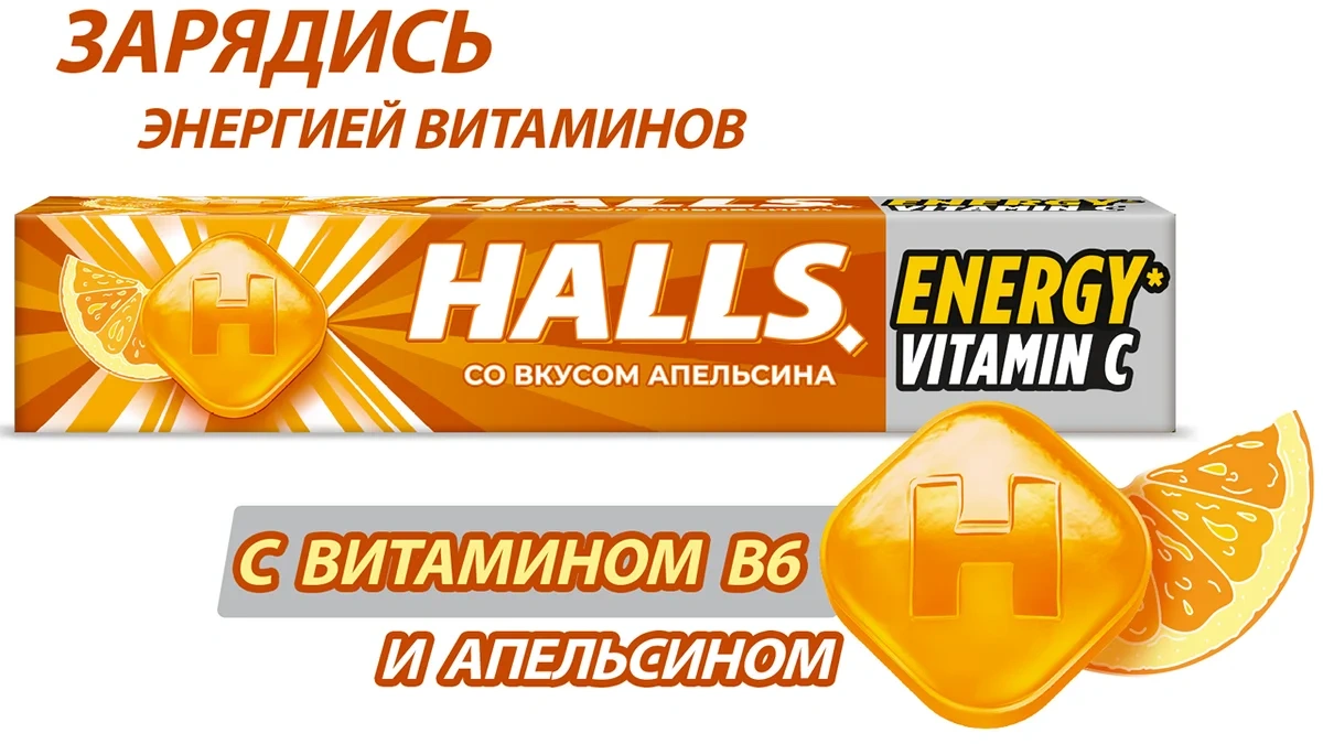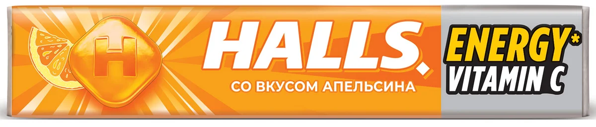 Карамель леденцовая Halls с витамином С и вкусом апельсина, 25г