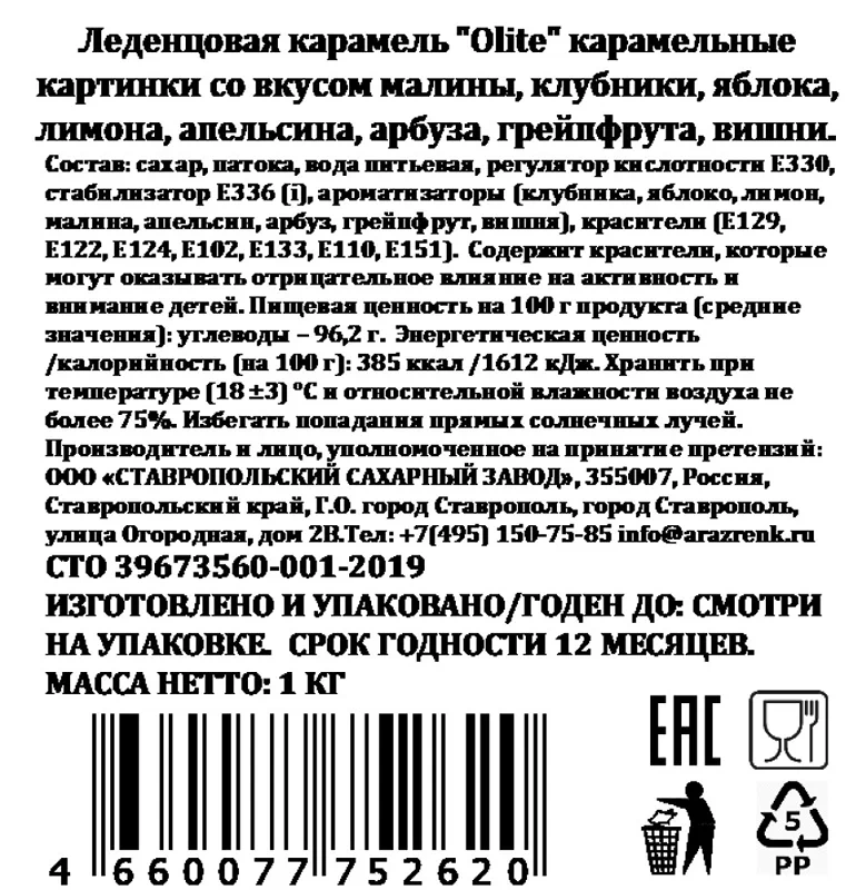 Карамель леденцовая Olite карамельные картинки ассорти, 1кг