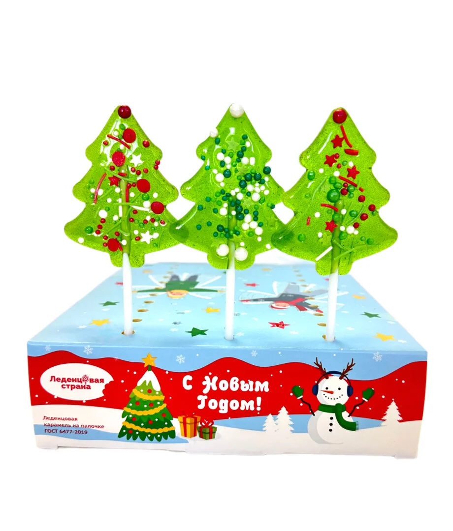 Леденец на палочке воплощает символ Нового года. Леденец украшен кондитерской посыпкой, символизирующая елочные украшения. Это не только отличная сладость, но и украшение вашего праздника или подарка.