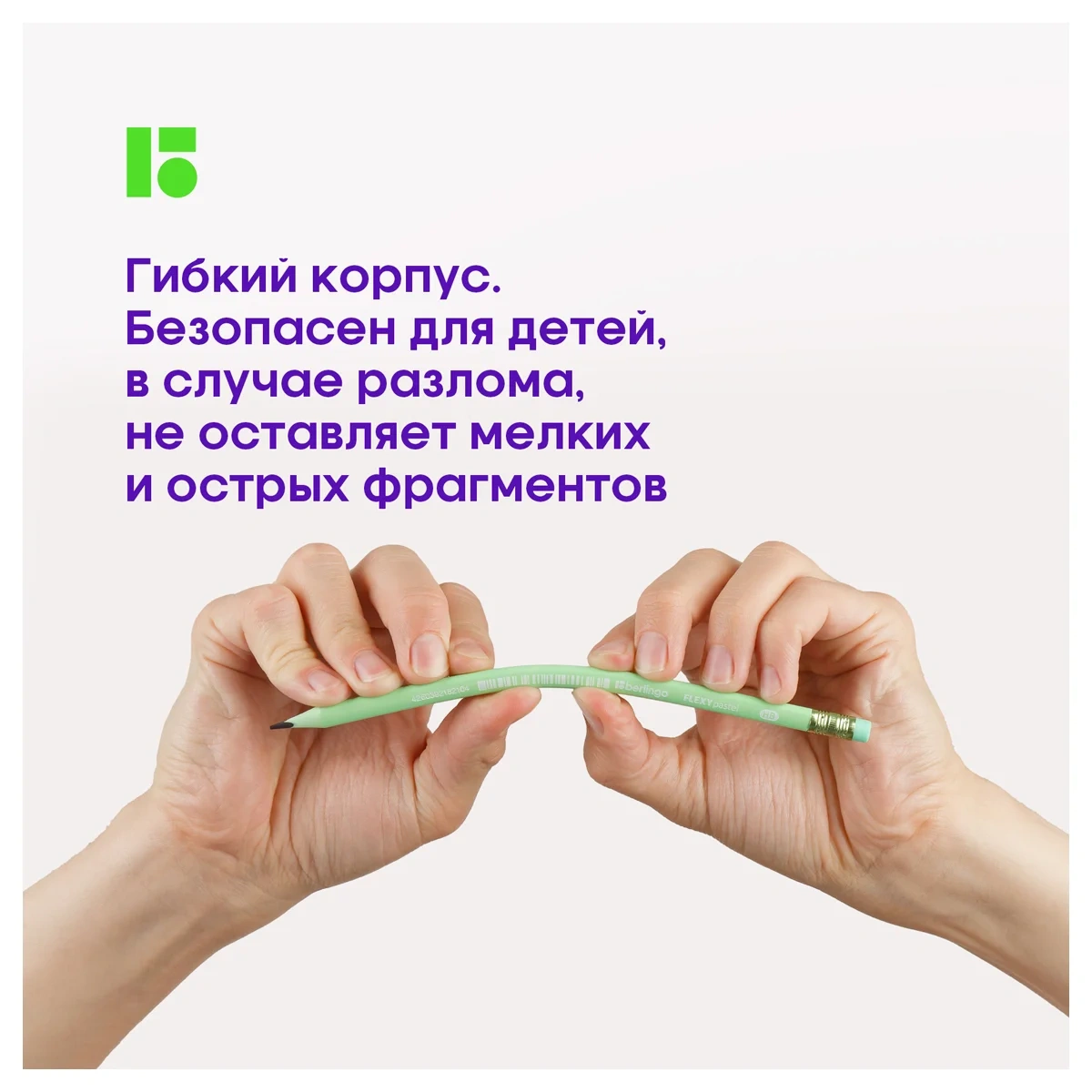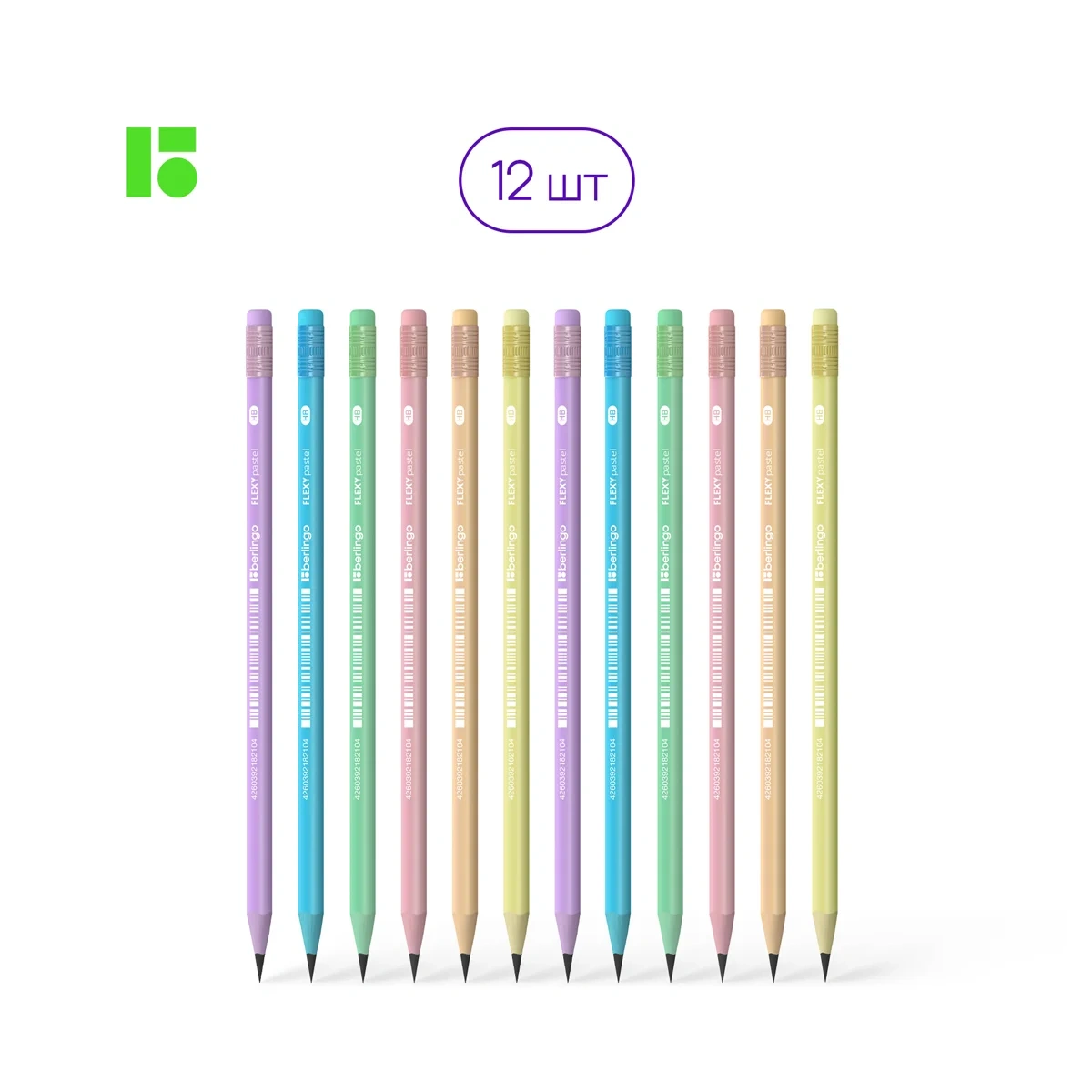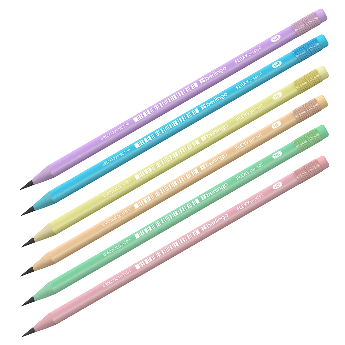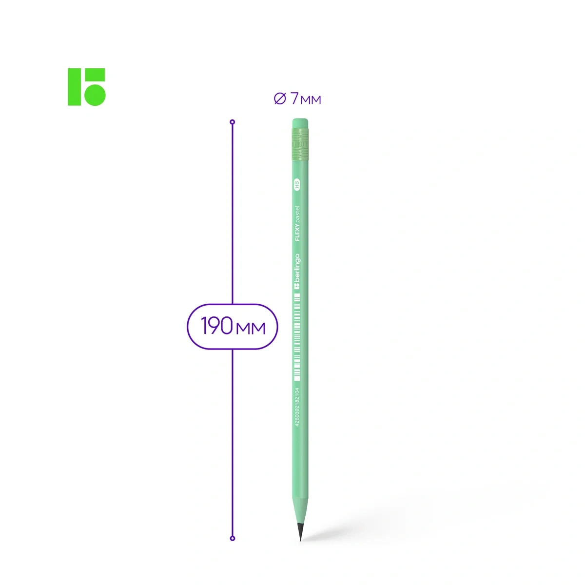 Чернографитный ударопрочный пластиковый карандаш Berlingo 'Flexy Pastel' с цветным материалом копруса, с заточкой и ластиком. Стильный корпус в пастельных тонах в сочетании с цветным пластиком в тон корпуса карандаша и белым лого. Не ломается при падении. Безопасен для детей, в случае разлома, не оставляет мелких и острых фрагментов. Подходит для черчения и рисования. Диаметр грифеля 2 мм, твердость HB, трехгранная форма, штрих-код на корпусе. Упаковка в прозрачную ПВХ-коробку с печатью и европодвесом.