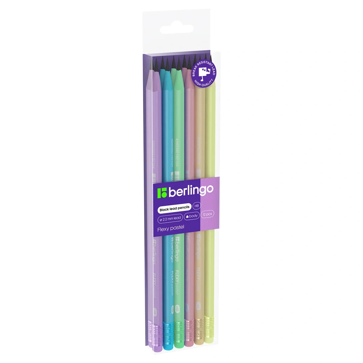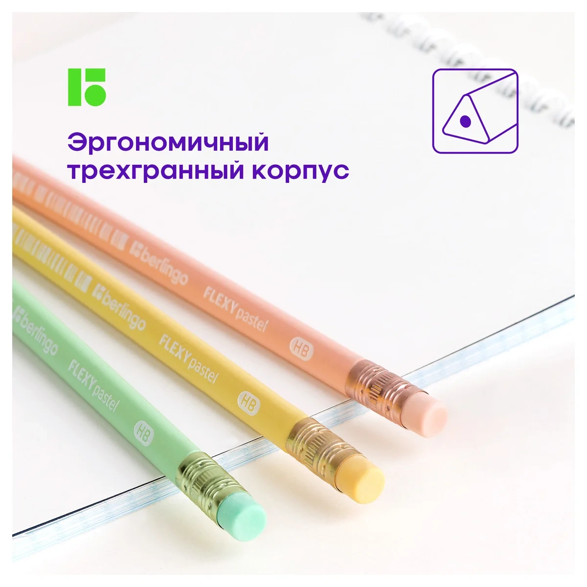 Карандаш ч/г Berlingo 'Flexy Pastel' HB, с ластиком, трехгранный, заточен., пластиковый, ПВХ-бокс