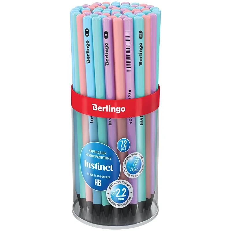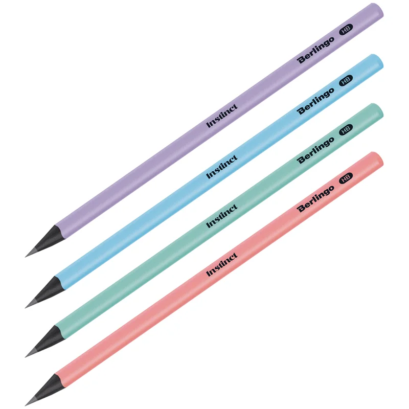 Чернографитный ударопрочный карандаш Berlingo 'Instinct' из черного дерева, с заточкой. Нежные пастельные цвета ассорти: лавандовый, мятный, аквамириновый, фламинго. Матовое покрытие. Не ломается при падении. Закругленный, обработанный в цвет корпуса срез. Безопасен для детей. Подходит для черчения и рисования. Диаметр грифеля 2,2 мм, твердость HB, трехгранная форма, штрих-код на корпусе. Упаковка в прозрачную разъемную ПВХ-тубу с возможностью использования в качестве подставки.