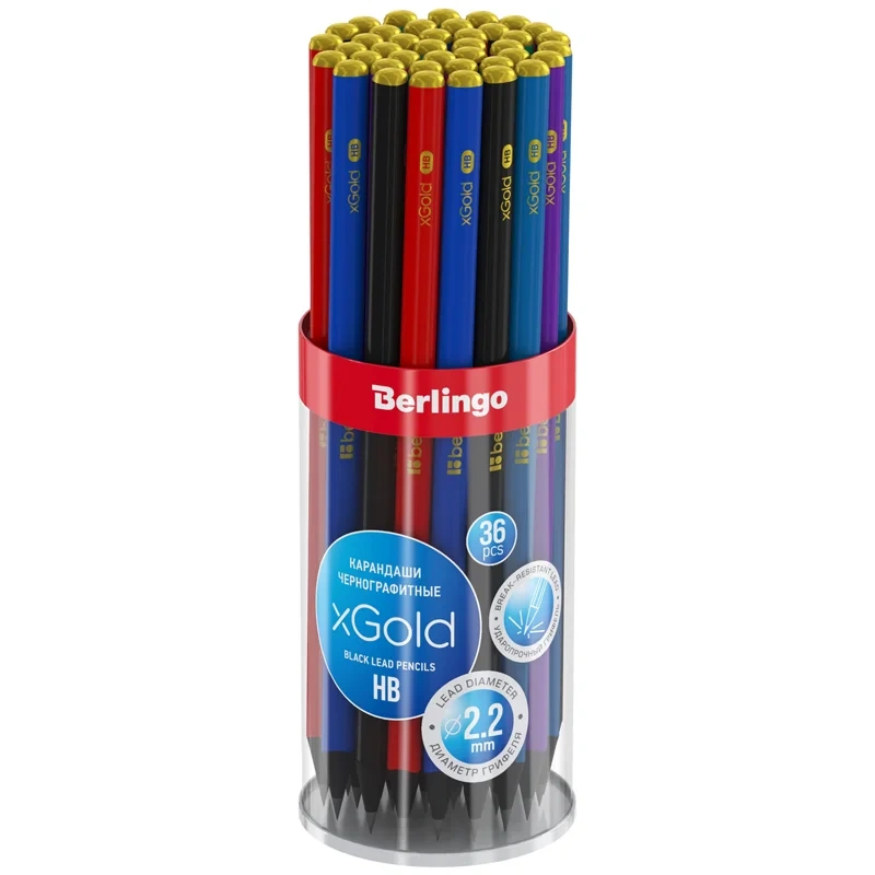 Чернографитные карандаши Berlingo 'xGold' из черного дерева с заточкой энергономичной трехгранной формы. Карандаш закруглен, срез обработан. Дизайны корпуса представлены в 7 цветах. Карандаш создан из специально обработанной древесины для идеальной заточки. Он подходит для черчения и рисования. Карандаш не ломается при падении и безопасен для детей. Упаковка в прозрачную разъемную ПВХ-тубу с возможностью использования в качестве подставки. Индивидуальный ШК на корпусе.