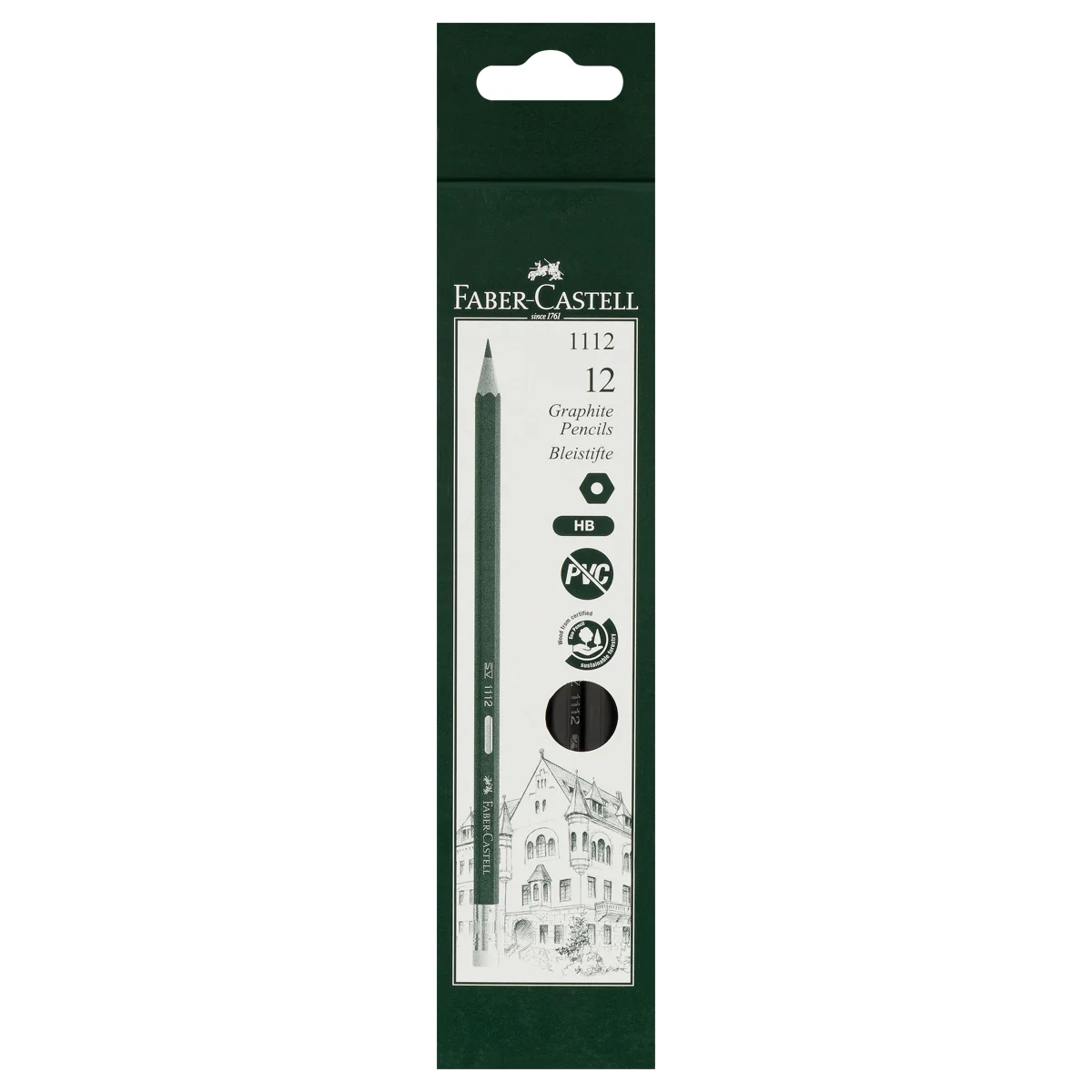 Высококачественный чернографитный карандаш с ластиком 1112 от немецкого производителя с мировым именем Faber-Castell идеально подходит для письма, рисования и черчения. Благодаря специальной технологии проклеивания грифеля (SV), грифель не ломается при падении и затачивании. Корпус карандаша покрыт черной краской на водной основе. Ластик не содержит ПВХ. Твердость: HB.