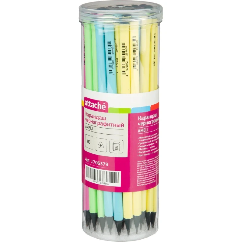 Карандаш чернографитный Attache Ameli HB б/ласт трехгр черн.дерево, в асс Карандаш чернографитный Attache Ameli первый помощник для выполнения проектно-конструкторских работ, позволяет сделать легкий набросок, быстрый стремительный рисунок или нарисовать полноценную картину. Карандаш выполнен в трехгранном корпусе из черного дерева. Многослойное лаковое покрытие с шелковистым эффектом. Карандаши поставляются заточенными, без ластика. Твердость грифеля - HB. Легко затачивается. Внимание! Товар поставляется в нескольких вариантах цвета/дизайна (без возможности выбора).