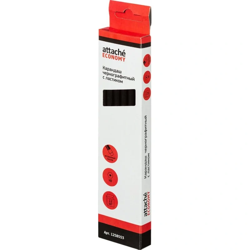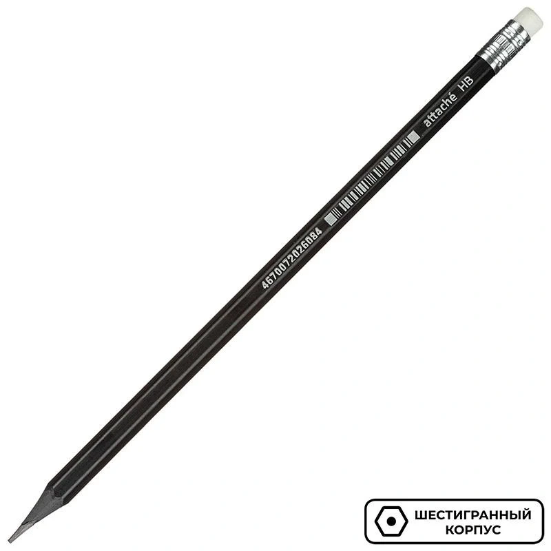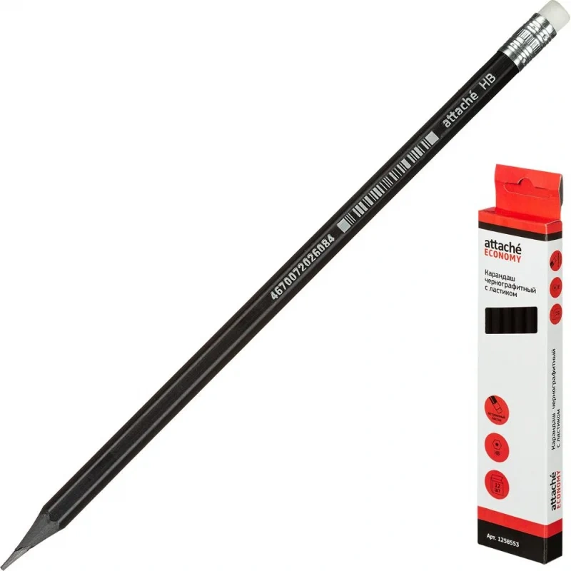 Карандаш чернографитный Attache Economy первый помощник для выполнения проектно-конструкторских работ, позволяет сделать легкий набросок, быстрый стремительный рисунок или нарисовать полноценную картину. Шестигранный корпус карандаша изготовлен из пластика, оснащен ластиком. Карандаш легко точится и не крошится. Поставляется заточенным. Твердость грифеля - НB. Цвет корпуса - черный.