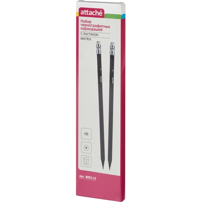 Карандаш Attache подходит для выполнения проектно-конструкторских работ, позволяет сделать легкий набросок, быстрый стремительный рисунок или нарисовать полноценную картину. Карандаш изготовлен из пластика, имеет шестигранный корпус, с ластиком. Карандаш легко точится и не крошится. Поставляется заточенным. Твердость грифеля — НB. Цвет корпуса — черный. В упаковке 6 штук.