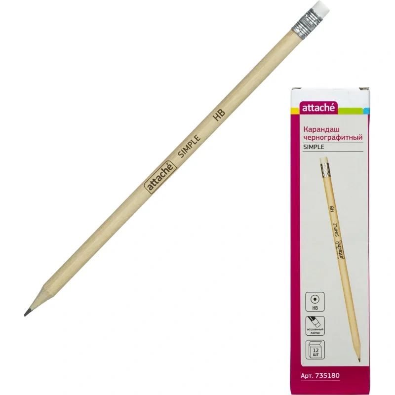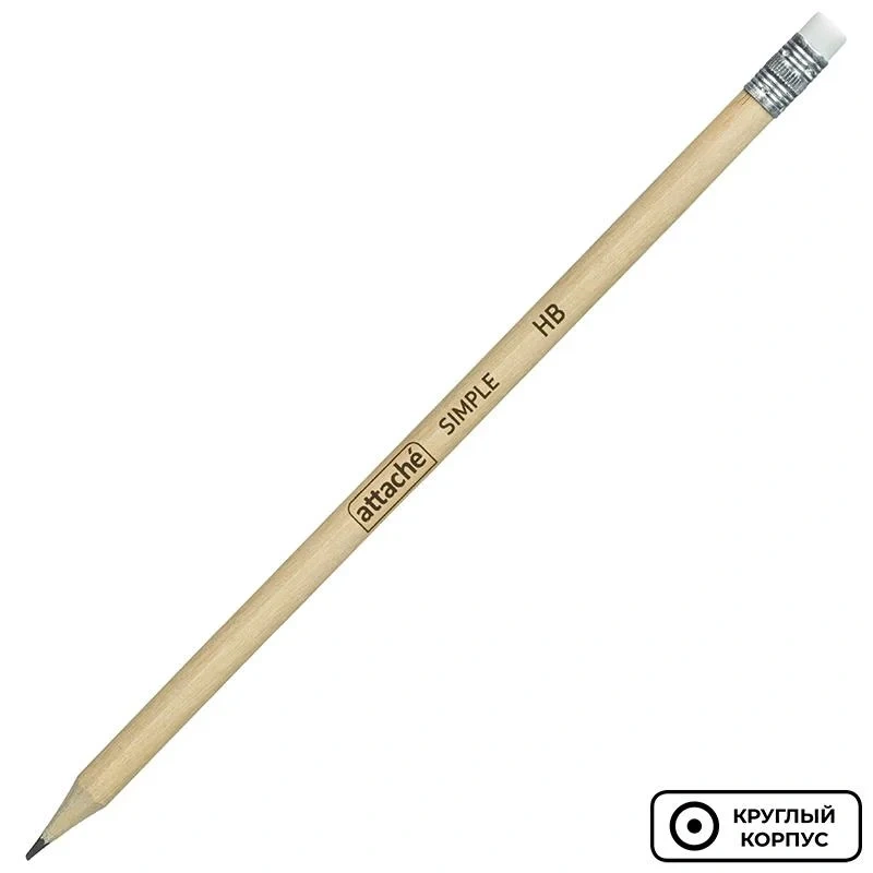 Карандаш Attache первый помощник для выполнения проектно-конструкторских работ, позволяет сделать легкий набросок, быстрый стремительный рисунок или нарисовать полноценную картину. Круглый корпус карандаша изготовлен из дерева, оснащен ластиком. Корпус выполнен из древесины, отвечающей всем принципам экологичности. Карандаш легко точится и не крошится. Поставляется заточенным. Твердость грифеля - НB. Цвет корпуса - бежевый.