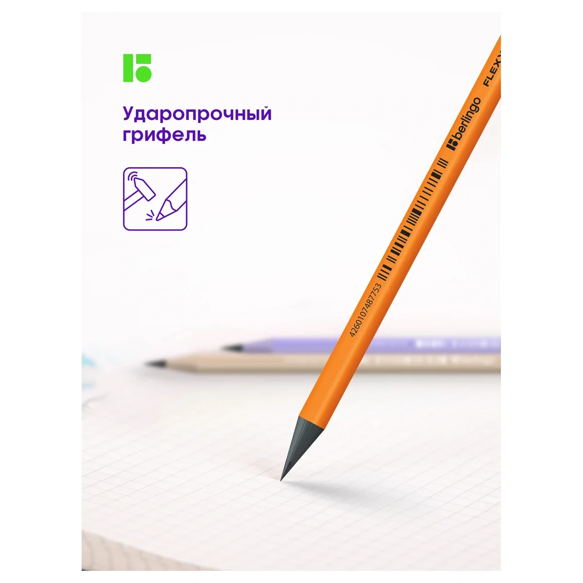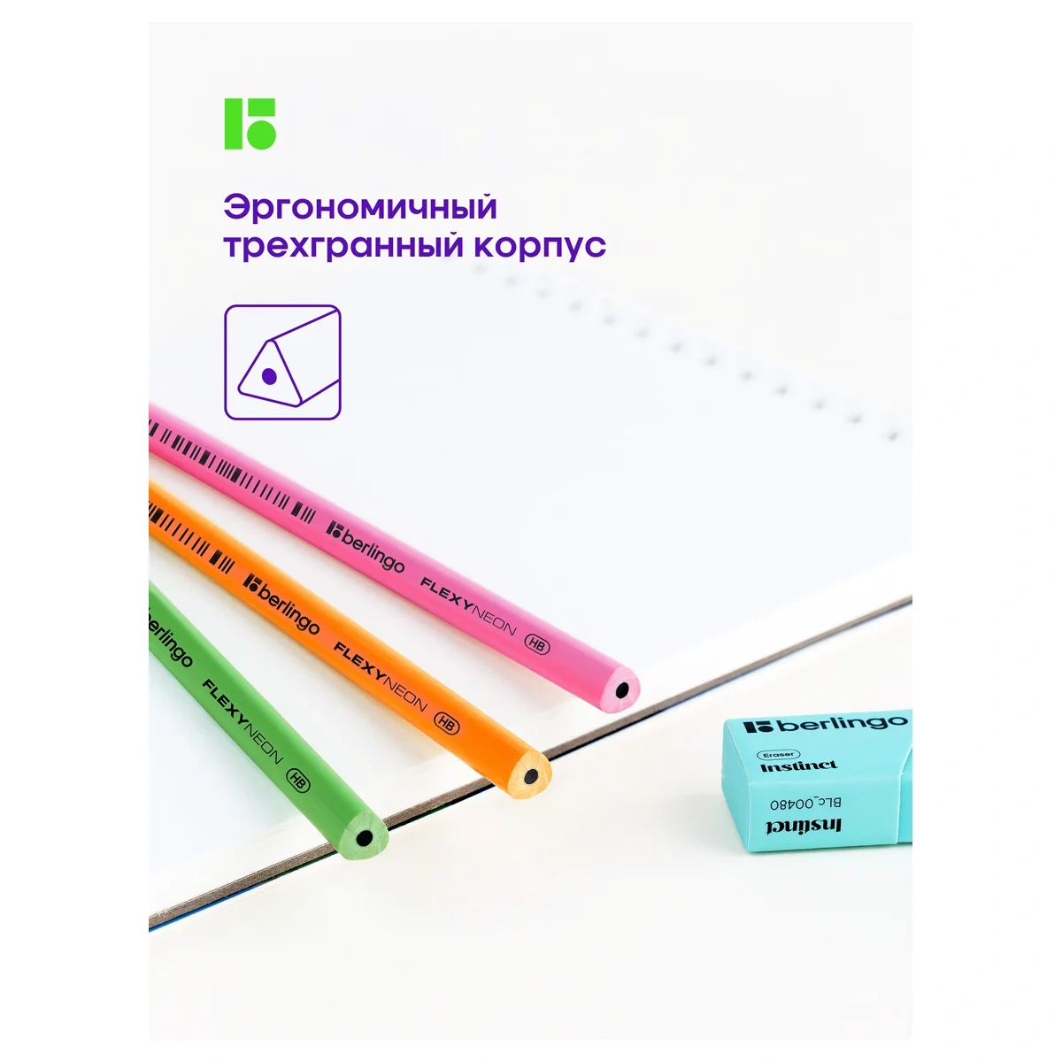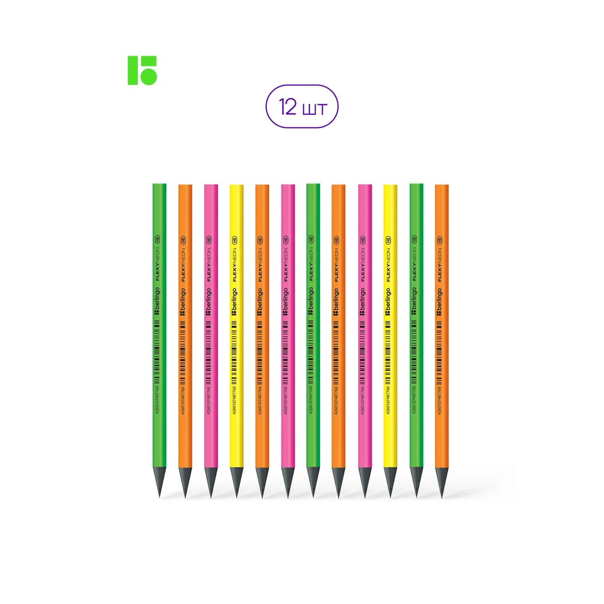 Карандаш чернографитный Berlingo Flexy Neon HB, без ластика, ассорти
