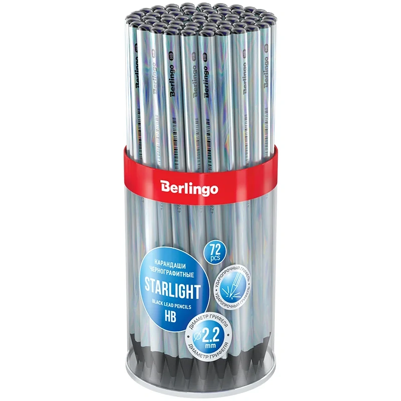 Карандаш чернографитный Berlingo Starlight HB, черно-белый корпус, заточенный