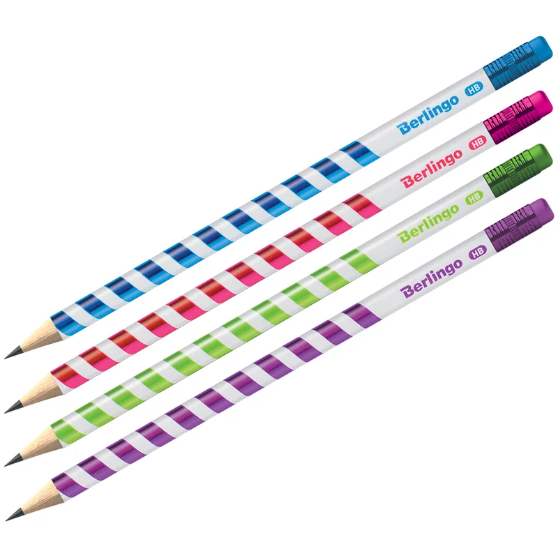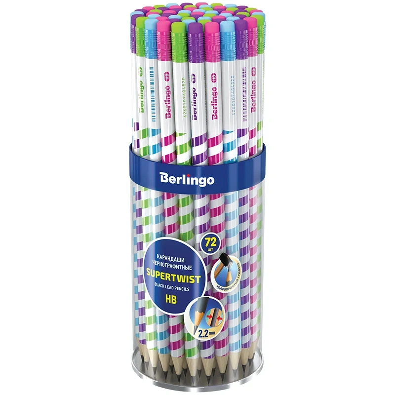 Карандаш чернографитный Berlingo Supertwist HB, с ластиком, корпус ассорти, заточенный
