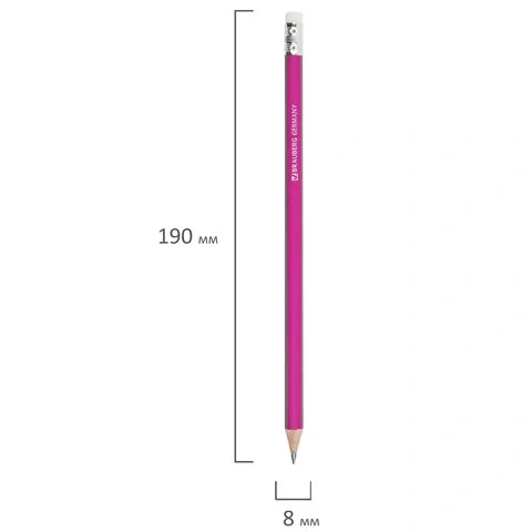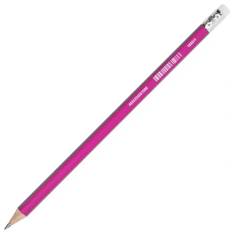 Изготовлен из дерева высокого качества, оснащен ластиком. Имеет трехгранное сечение. Карандаш длиной 190 мм легко точится и не крошится. Обладает средней степенью твердости – HB. Диаметр грифеля - 2,05 мм. Выполнен в розовом цвете с серебристыми деталями. Поставляется заточенным.
