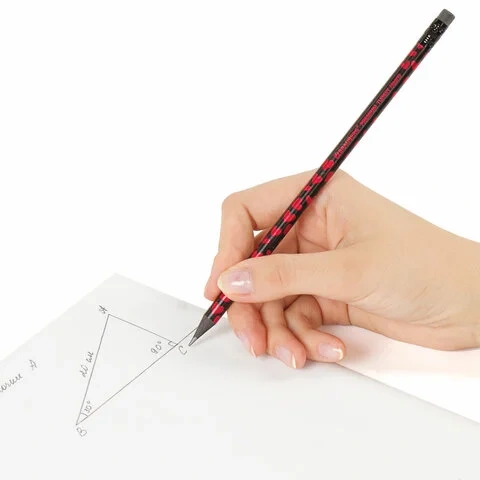 Каждый карандаш имеет индивидуальный штрих-код. Легко затачивается, максимально устойчив к повреждениям. Изготовлен из чёрного дерева высокого качества, оснащен ластиком. Имеет круглое сечение. Карандаш длиной 190 мм обладает средней степенью твердости – HB. Выполнен в черном цвете с цветными дизайнами. Поставляется заточенным в пластиковом стакане по 72 штуки.