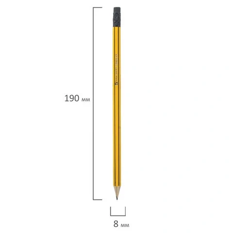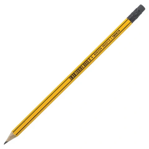 Карандаш чернографитный Brauberg НВ, с ластиком, желтый корпус