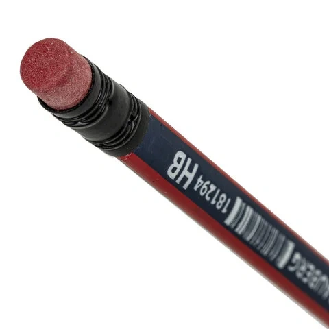 Изготовлен из дерева высокого качества, оснащен ластиком. Имеет трехгранное сечение. Карандаш длиной 190 мм легко точится и не крошится. Обладает средней степенью твердости – HB. Диаметр грифеля - 2,8 мм. Выполнен в синем цвете с красными деталями. Поставляется заточенным.