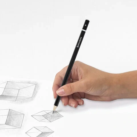 Карандаш изготовлен из дерева высокого качества. Имеет шестигранное сечение. Карандаш длиной 176 мм легко точится и не крошится. Твердость грифеля H. Диаметр грифеля - 2,05 мм. Выполнен в черном цвете. Поставляется заточенным.
