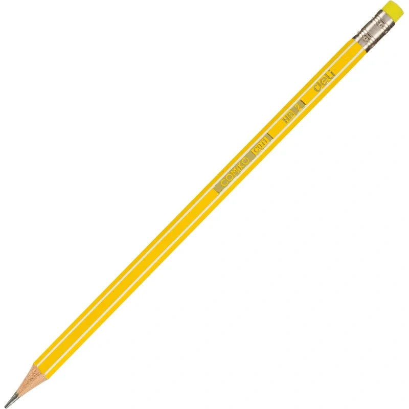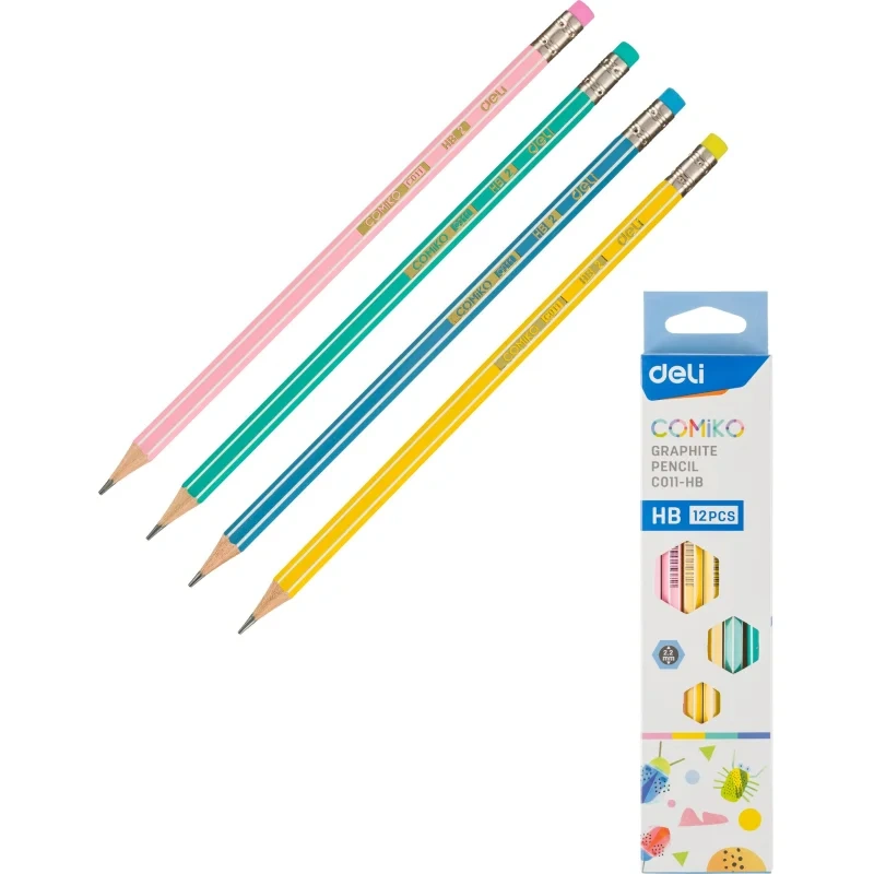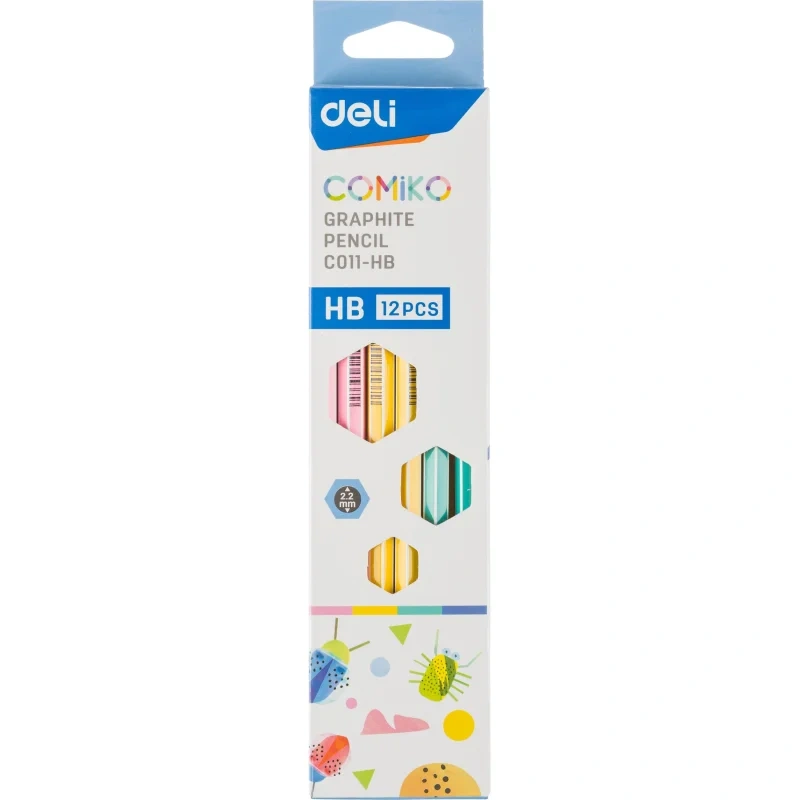 Карандаш чернографитный Deli Comico в шестигранном деревянном корпусе с ластиком. Многослойное лаковое покрытие карандаша будет украшать рабочий стол не только школьника, студента, но и даже офисного работника. Карандаш легко найти, если он упадет со стола и с той же легкостью обнаружить его в рюкзаке учащегося. Корпус карандаша выполнен в 4-х тонах: голубом, желтом, зеленом, розовом. Шестигранная форма развивает умение правильно держать карандаш у детей, а также не дает карандашу укатываться со стола. Простой карандаш с ластиком поставляется заточенным. Твердость грифеля — НB. Упаковка картонная с европодвесом.