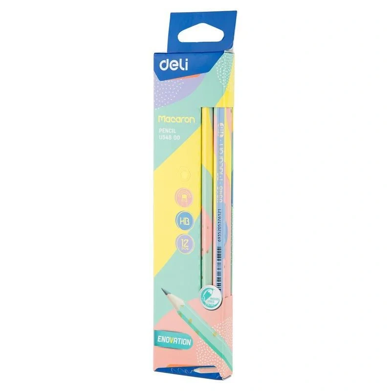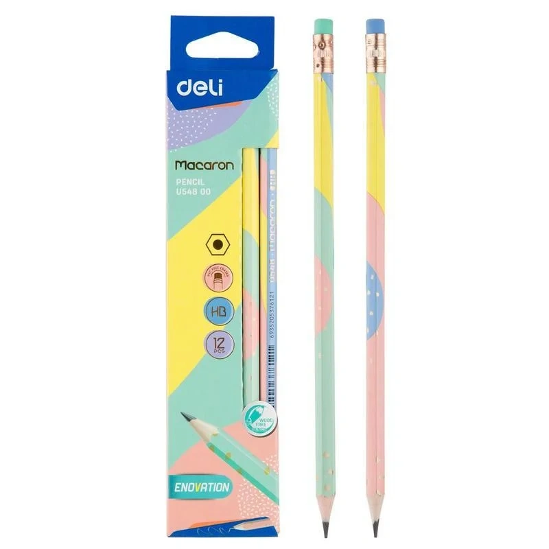 Карандаш чернографитный Deli Macaron EU54800 HB, шестигранный, ассорти
