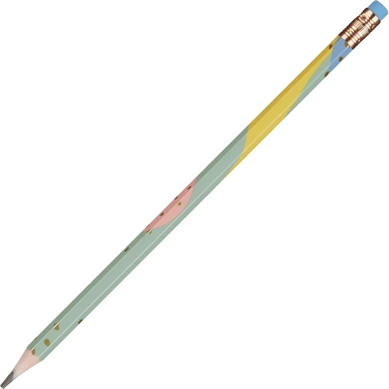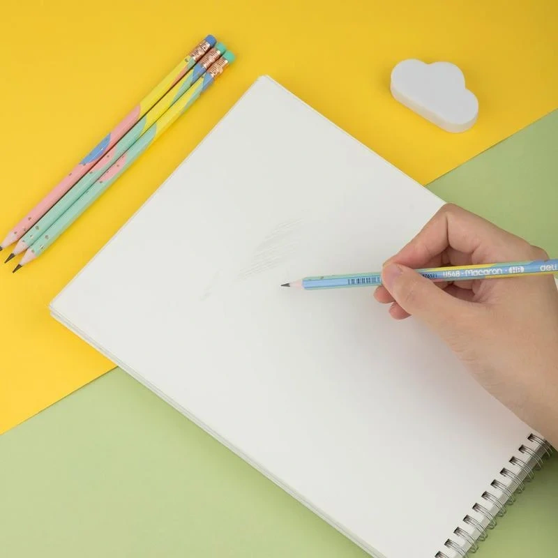 Чернографитный карандаш бренда Deli принадлежит серии Macaron, которая характеризуется нежными пастельными цветами. Шестигранный корпус карандаша изготовлен из пластика, не образует острых краев в случае разлома. Карандаш легко точится и не крошится. Поставляется заточенным и имеет ластик. Твердость грифеля — НB.