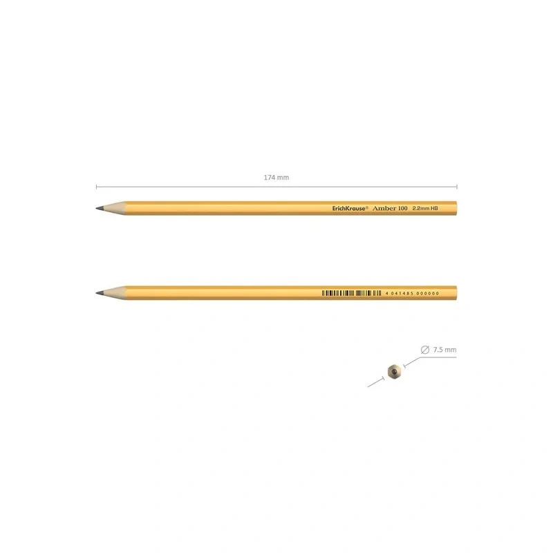Карандаш чернографитный Erich Krause Amber 100 HB, шестигранный, корпус желтый, 45476