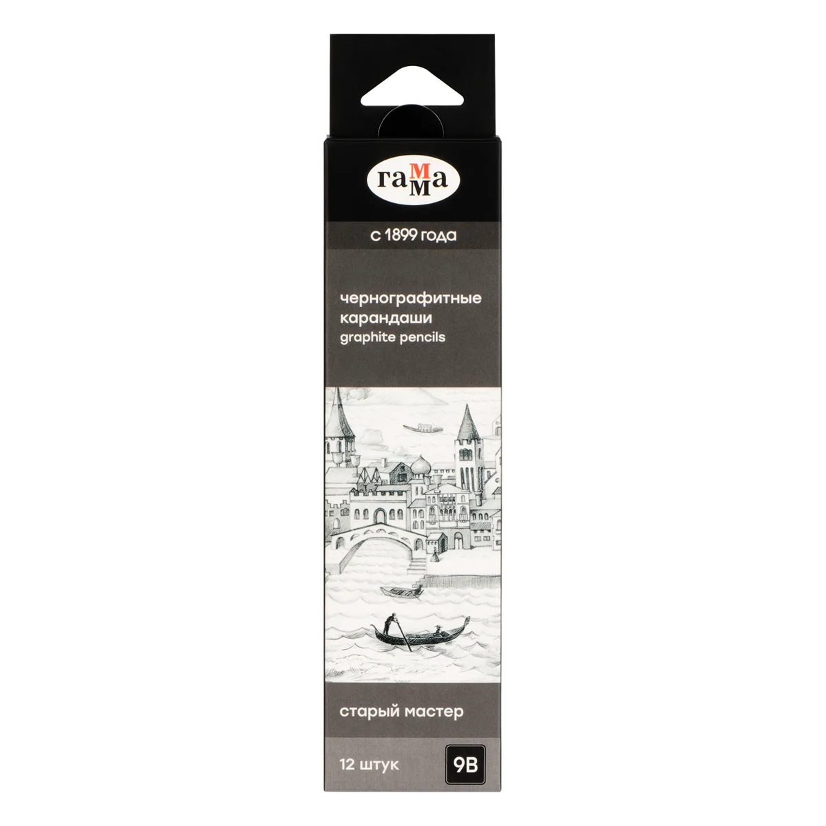 Чернографитные карандаши ГАММА серии «Старый мастер» твёрдостью 9B предназначены для рисования, скетчинга и черчения на бумаге и картоне. Диаметр грифеля – 3,9 мм. Карандаши «Старый мастер» выпускаются в 20 различных степенях твердости: от 8H до 10B, поэтому идеально подойдут как для художников, иллюстраторов, так и для архитекторов и инженеров. Карандаши упакованы в картонную коробку по 12 штук.