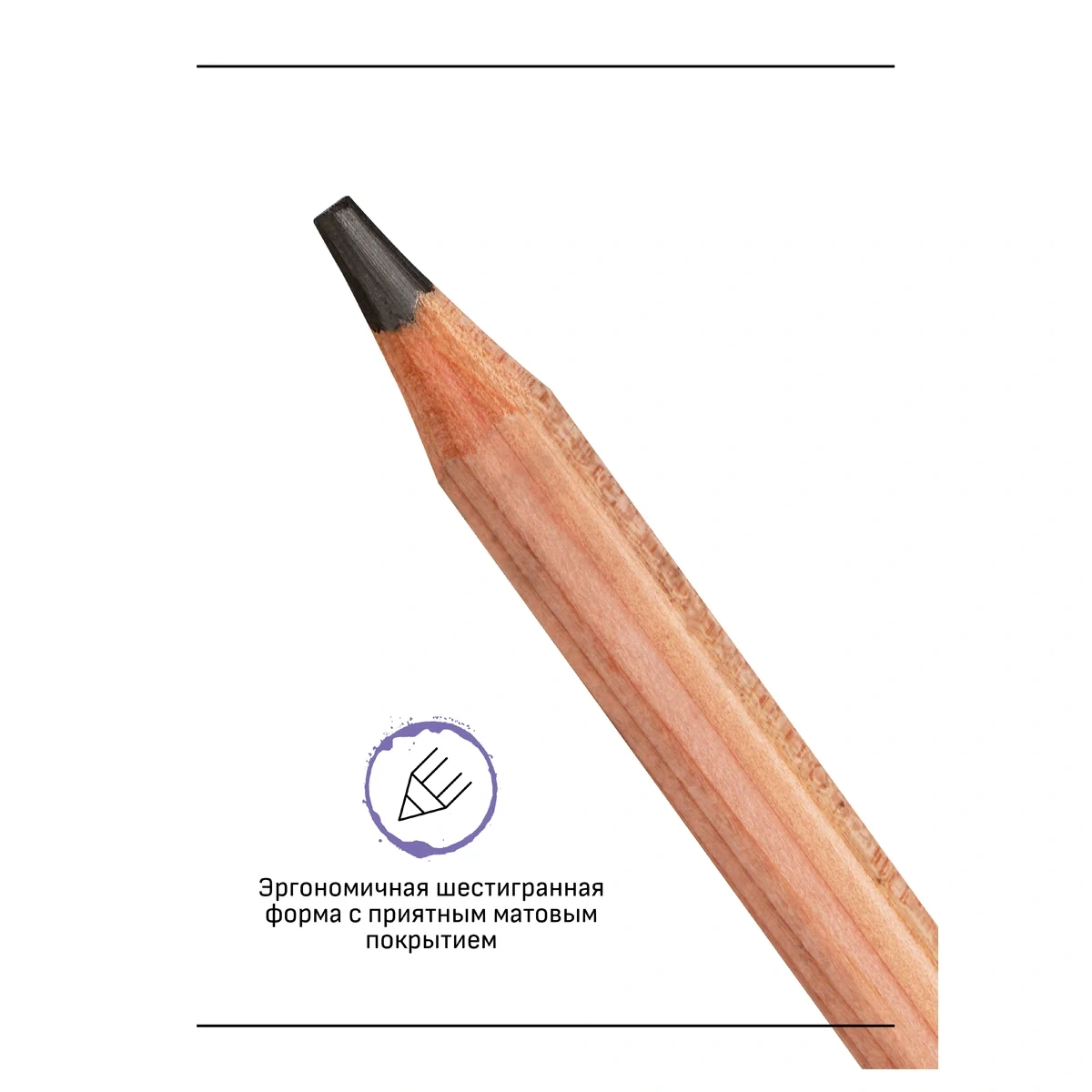 Карандаши ГАММА изготовлены из высококачественной натуральной древесины кедра. Это мягкая, но прочная древесина, долговечная и водонепроницаемая. Благодаря этому карандаши затачиваются легко без зазубрин и заноз. Корпус эргономичной шестигранной формы с приятным матовым покрытием комфортно держать в руке. Длина корпуса – 177 мм, а диаметр – 7 мм.