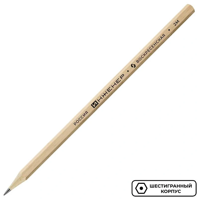 Карандаш чернографитный ИНЖЕНЕР 2М (2В) шестигр., без. ласт., 1235